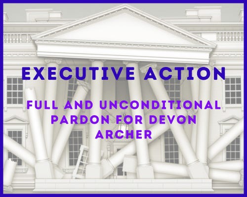Devon Archer receives a full and unconditional presidential pardon, erasing his criminal conviction and related penalties.
